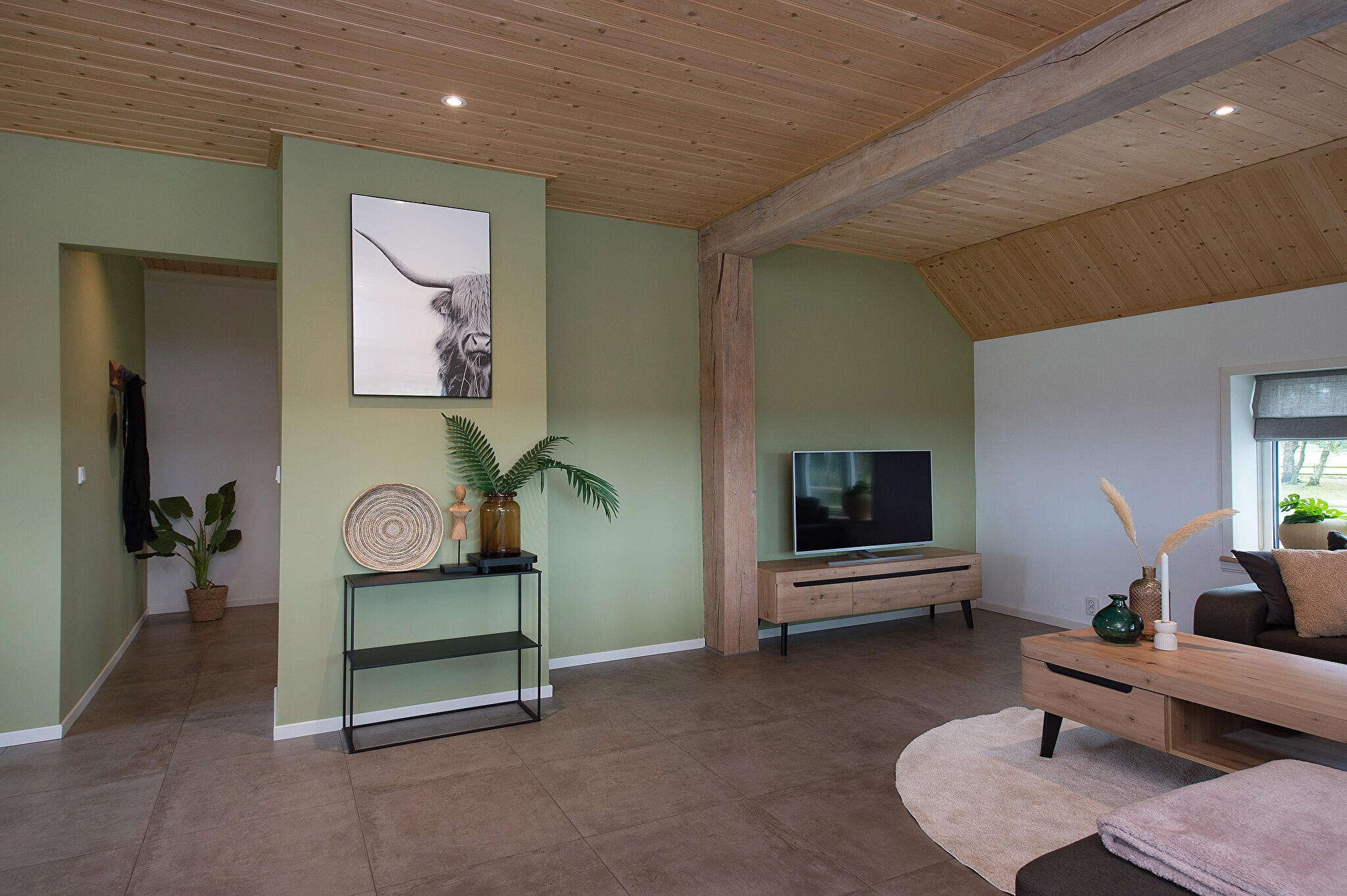 Als de basis goed is en de bewoner alleen wil dat de woning een warmere uitstraling krijgt, bieden wij de mogelijkheid om alleen accessoires en kleine meubelen toe te voegen. Deze prachtige boerderij had een kleurloze basis, maar met behulp van een goede compositie, kleurrijke accessoires, planten en vloerkleden hebben we de woning een nieuwe uitstraling gegeven.